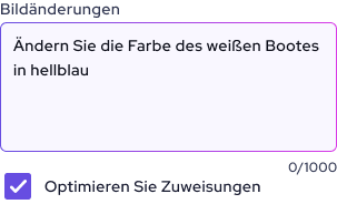 2. Änderung mit Worten beschreiben - zum Beispiel "finde das rote Auto und mache es blau", "finde den Himmel und ändere ihn in einen Sonnenuntergang" oder "finde die leere Wand und füge ein Bild hinzu". Schreiben Sie einfach in normaler Sprache, die KI versteht Sie.