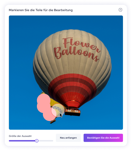 Unser intelligenter Pinsel ermöglicht es Ihnen, genau das zu markieren, was Sie ändern müssen. Sie können die Pinselgröße anpassen und die KI erkennt automatisch Objektgrenzen für ein perfektes Ergebnis.